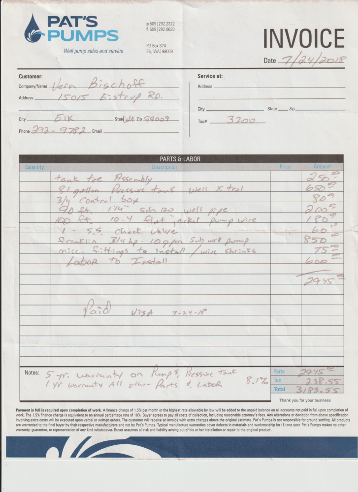 | Available Documents Exhibit A, Form 17 - Seller Disclosure, Well Pump Install | |||||||||||