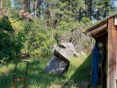 Opportunity knocks! Teardown single wide on 2.8 acres w/power, water & septic plus aged outbuildings & beautiful fruit trees, garden area & Kettle River views. This property cleaned up would be a smart investment. The roof over the manufactured to convey at closing.