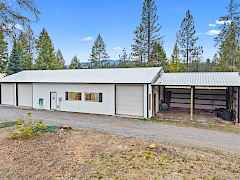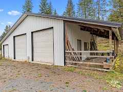 A must see for the buyer that needs large shops! Spacious 1755 sq. ft. manufactured home nestled on 37.7 picturesque acres, surrounded by mature timber and featuring a peaceful stream. This property boasts a large, covered deck perfect for outdoor gatherings, two expansive shops—one equipped with over 2100sq ft that includes a bathroom, cement floor, loft and lean-to. The second can be a barn or shop with 1200 sq. ft. of storage space. Fenced yard area with drilled well and two septic systems. The home's open floor plan offers plenty of room to relax and entertain, with new carpet in the living room, economical heat pump and pellet stove. Nature lovers will appreciate the abundance of wildlife and park-like setting.
