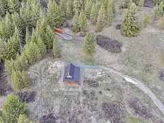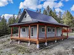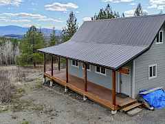Imagine a sky full of mountain views from your wrap-around covered deck overlooking wide open pastures. Located at the end of the road and behind 2 gates, this newly constructed cabin is unfinished but the shell has everything you need to create your own mountain retreat -- steep metal roof, cedar timber posts, open A-frame design with loft, and big peak windows that pull in views of 49 Degrees North and the surrounding ranges. Electric is wired in for a generator and power is at the property line. The 22 acres runs from open meadow into mixed ponderosa, Douglas fir, and aspen draws, with timber company land off the back boundary and national forest beyond. Drilled well on site, but condition unknown. Shipping container included. Cisterns located uphill from cabin for water storage.