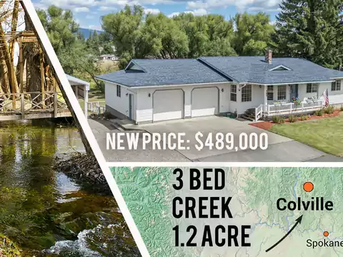 LOOK NO FURTHER, this one has it all! Located just 9 miles east of Colville with territorial and mountain views of 49 Degrees North. This well-maintained ranch style home on 36+ acres with Narcisse Creek bordering the east side of the property, has all the amenities for a horse set that is so hard to find. Home affords beautiful oak kitchen with lots of cupboard and counter space, and access to the dining area for ease of entertaining. Expansive living room with vaulted ceilings, lots of windows for natural light and views, and natural rock gas fireplace that provides warmth and esthetics. Laminate flooring on much of the main floor makes upkeep a snap. Full basement with minimal finish gives you the option to make it yours. 4-bay machine shed/shop and 3600 sq ft barn finishes it up.